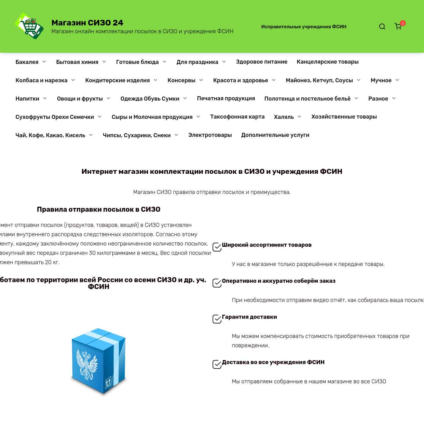 | Заголовок (тег h1) | Интернет магазин комплектации посылок в СИЗО и учреждения ФСИН |