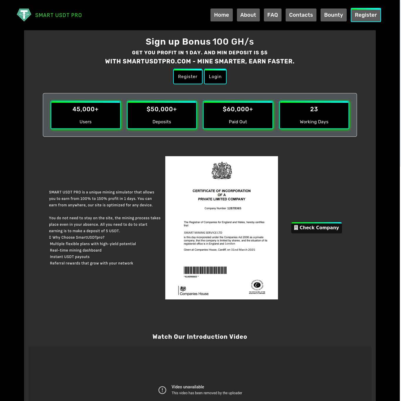 | Описание сайта (description) | SMART USDT PRO - MINE SMARTER. EARN FASTER. |