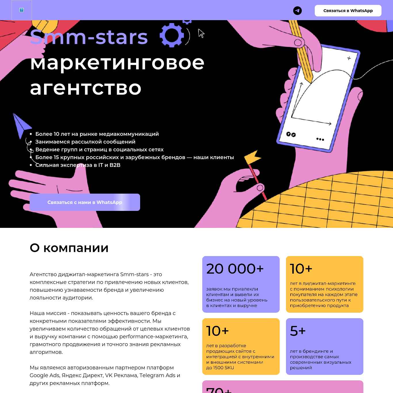 | Описание сайта (description) | Агентство диджитал-маркетинга Smm-stars - это комплексные стратегии по привлечению новых клиентов, повышению узнаваемости бренда и увеличению лояльности аудитории. |
