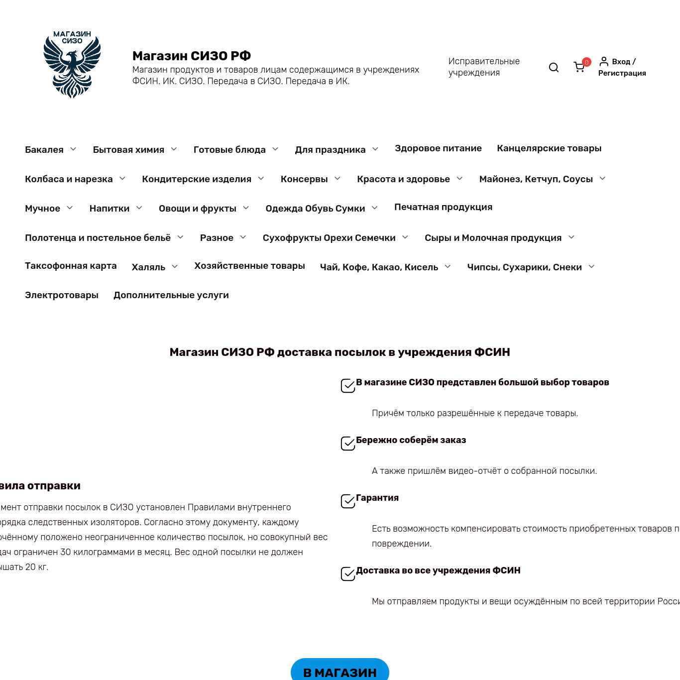 | Заголовок (тег h1) | Магазин СИЗО РФ доставка посылок в учреждения ФСИН |