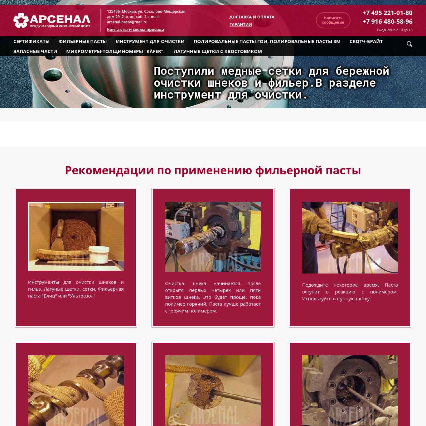 | Описание сайта (description) | Фильерные пасты, инструменты, запчасти от компании «Арсенал». Купить в Москве и РФ, доставка, ☏ +7 495 221-01-80 |
