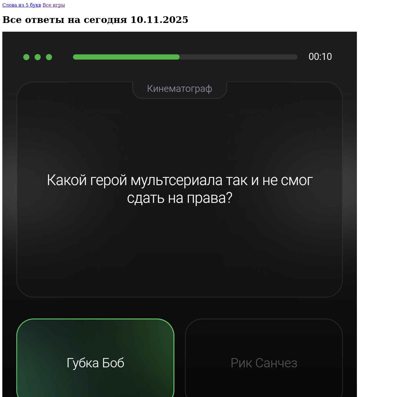 | Заголовок (тег h1) | Все ответы на сегодня10.11.2025 |